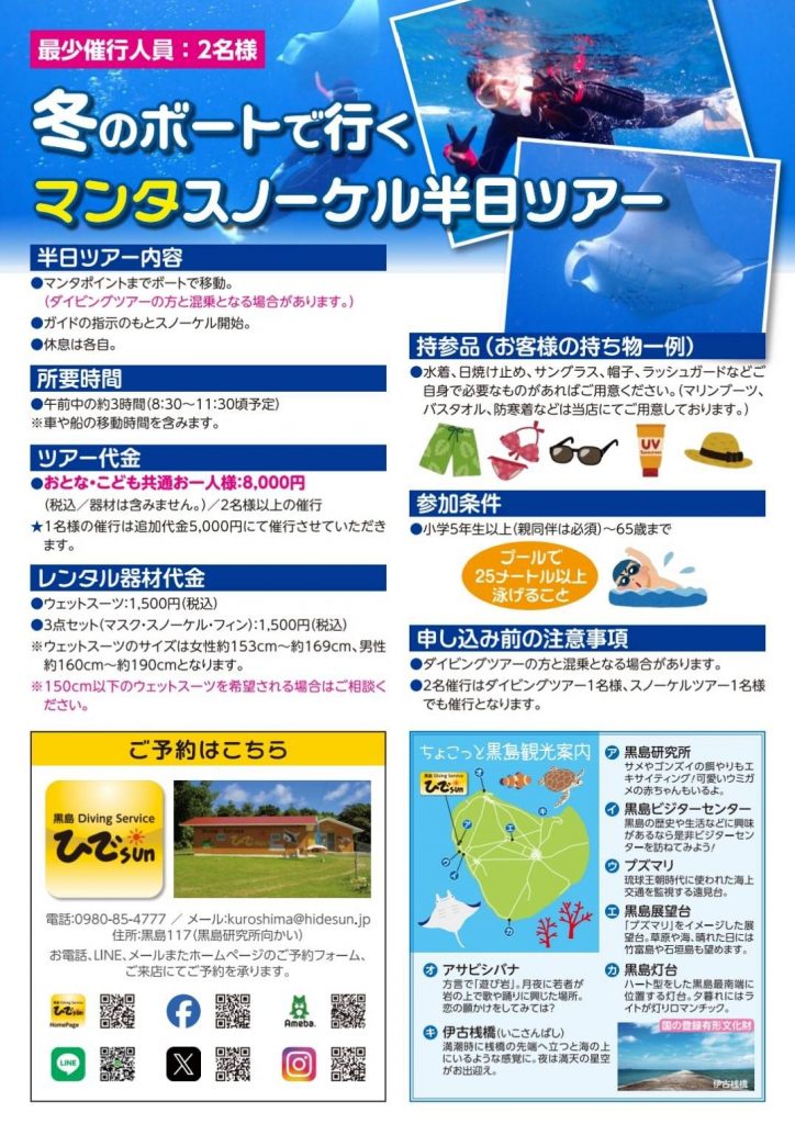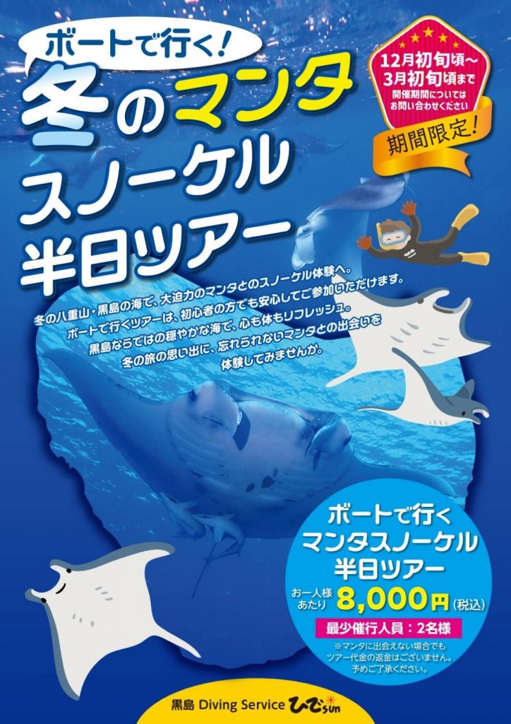 毎年12月半ばから捕食にマンタが訪れる事で有名な黒島!今年も既にシーズンが始まってたくさんのダイビング船が遠く石垣島からやってきます。